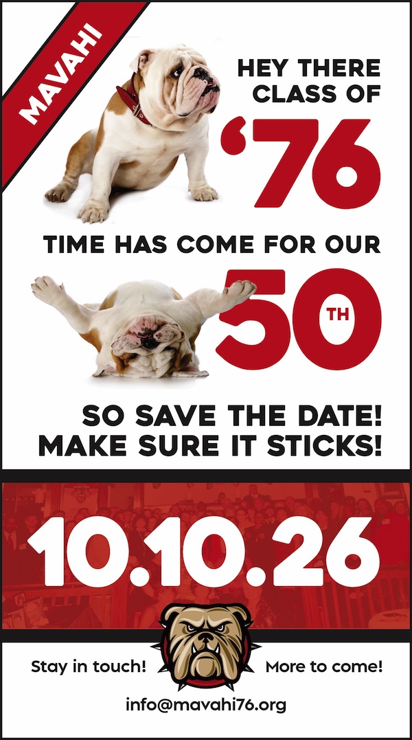 The MHS Class of 1976 will hold its 50th Reunion the weekend of October 10, 2026. If you would like more information or want to help, email to: info@mavahi76.org Kenton Clark, '76